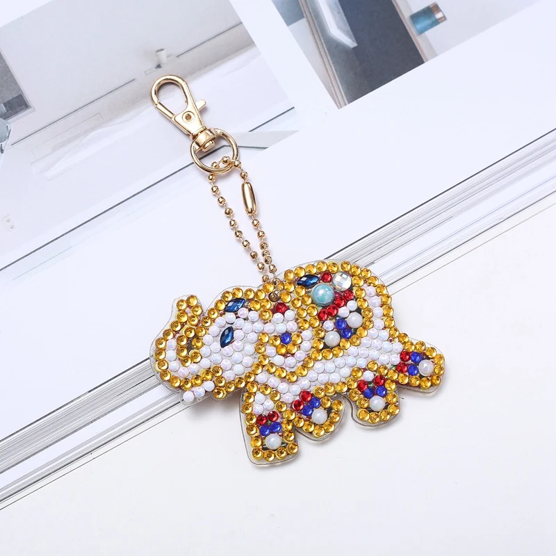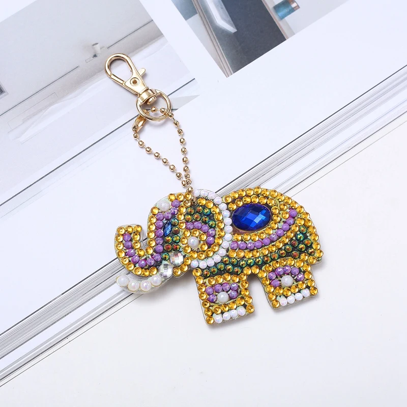 LIMITED EDITION 5Pcs Acrylic Board Diy Diamond Painting Elephant Keychain Tools Round Shinny Special Diamond Woman